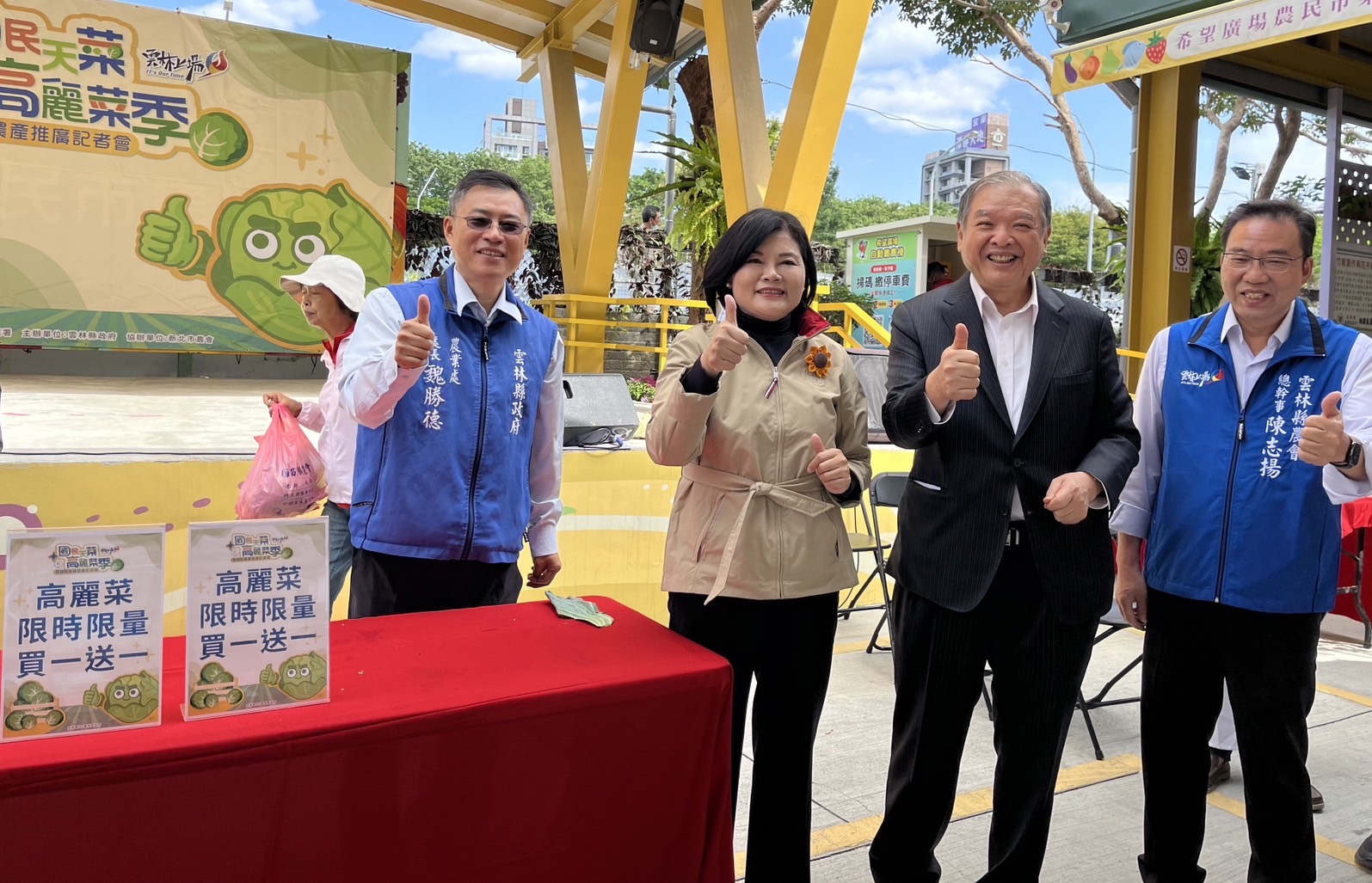 【記者 劉奕廷/台北 報導】雲林縣政府今(18)日北上希望廣場辦理「國民天菜高麗菜季」雲林縣農產推廣記者會,張麗善縣長、農業處魏勝德處長等人,帶領西螺鎮農會、雲林縣百大青農歐宥礎等農民,共同推薦最對時且品質優良的高麗菜。