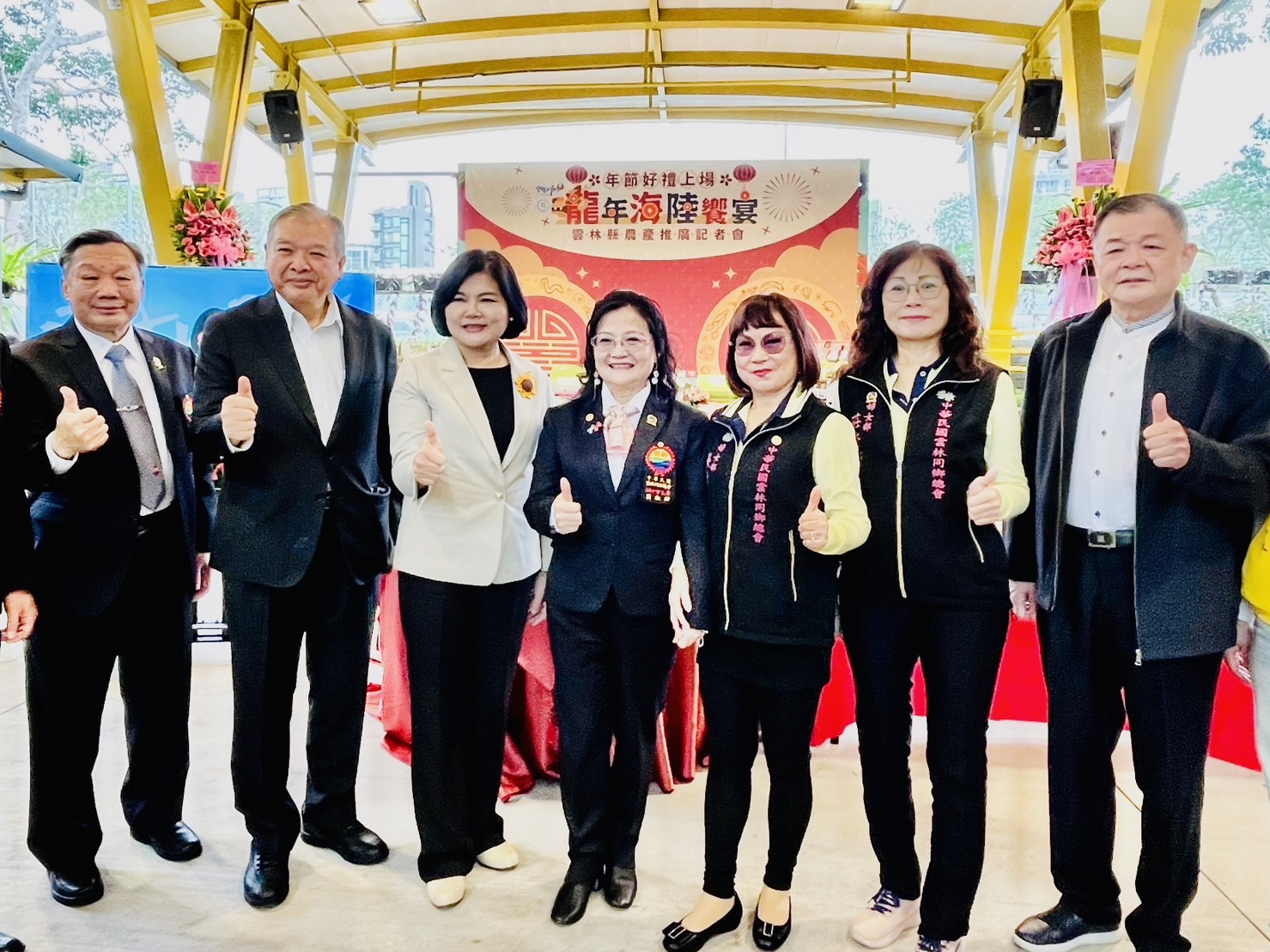 ▲雲林縣政府張麗善縣長(中)與北上推薦雲林年節佳餚的農漁團體及農友活動合影
