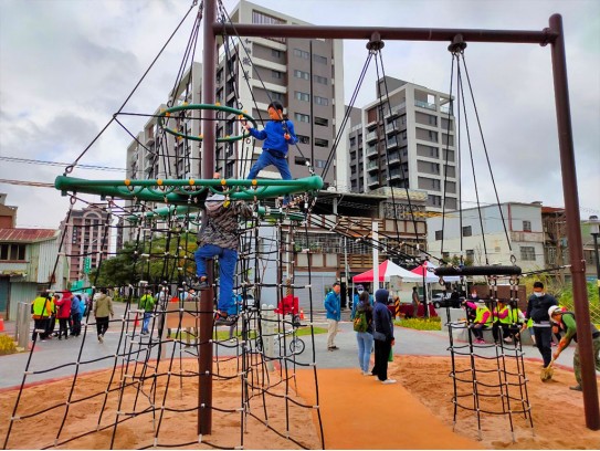 ▲鶯歌逗逗龍公園的山形攀爬網,能促進小朋友身體協調與肌肉發展。(圖/新北市景觀處提供)