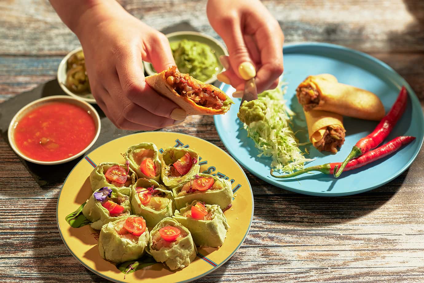 ▲鉑麗安美墨料理的「安吉拉牛肉餅」濃郁口感;「墨西哥海鮮卷」則酸香帶有清爽感。