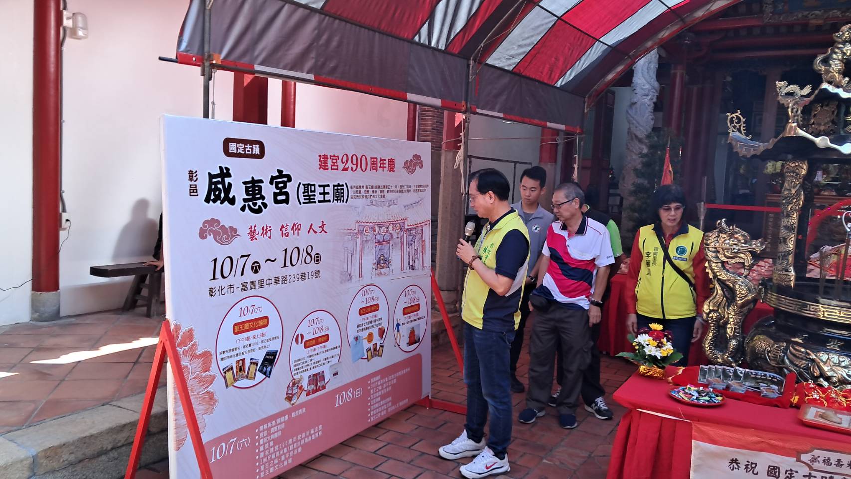 彰邑威惠宮(聖王廟) 慶祝建廟290周年10月7日、8日舉辦盛大祭典及慶祝活動,除了熱鬧討喜的「添油香-博聖杯」、「聖王之福-蓋平安」、「歡唱聯誼接龍」活動外,還有探究文史的「聖王廟文化論壇」,歡迎對古蹟歷史及建築有興趣之民眾報名參加。