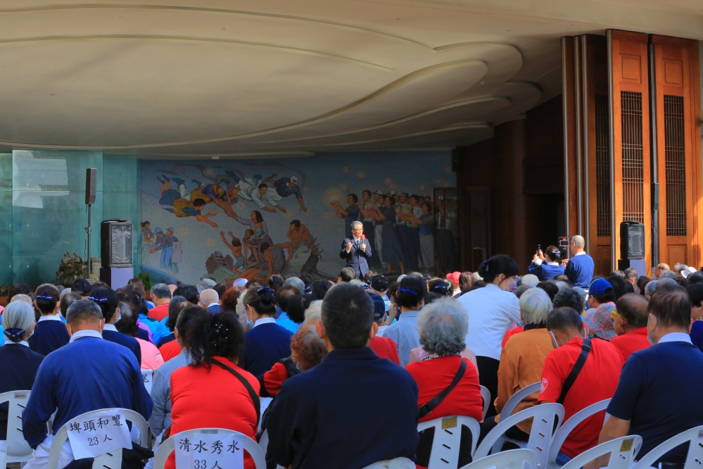 她也鼓勵大家「活到老學到老」,並用台語幽默地祝福現場長者:「呷得老老老,還能拿筷子夾土豆」,引來滿堂笑聲與掌聲。
