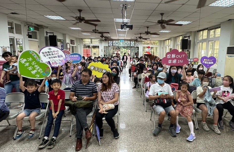 活動中除了安排繪畫比賽頒獎典禮外,現場還舉辦反家庭暴力講座等系列活動,加深民眾對兒童保護的觀念,打造無暴社區。(記者蘇榮泉攝)張翠瑤進一步指出,為能讓幼兒在家成長、在嘉安好,社會局積極推動多元兒童福利政策,佈建友善婦幼環境,呼籲父母對小孩用愛的教育取代體罰,使用正面管教方式,停止暴力擁抱愛。