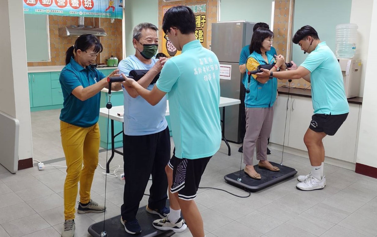 南華大學運動學程主任許伯陽表示,今年與衛生局合作運動班,投入超過20位專業師資,每班規劃12周、每周3次、每次2小時的運動課程,旨在養成定期運動的習慣。透過各類運動改善長者的骨鬆肌少症狀,同時搭配營養介入,不僅有營養師的衛教課程,課程結束後還提供高蛋白飲品,幫助學員增強肌力。