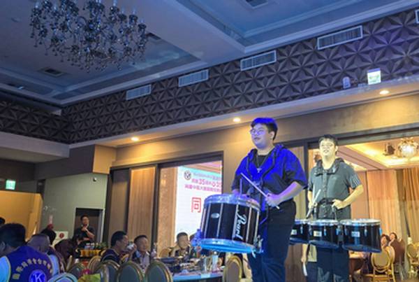 ▲嘉義縣國際同濟會會長交接,新任會長林怡華小兒子林育騰行進管樂氣勢開場。(圖/記者任芳葵攝)