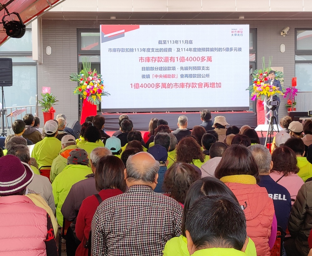 太保市公所新建辦公大樓啟用,市長鄭淑分施政報告說明用心市政推動城市轉型。(圖/記者任芳葵攝)公所推動「太保好事多」,在地商家及農特產品聯合行銷計畫,截至目前共辦理三場的培力課程,近230名在地商家代表參與;後續公所將邀集參與計畫的業者,建構「太保好事多」網路行銷平台,建立專屬太保的行銷品牌。