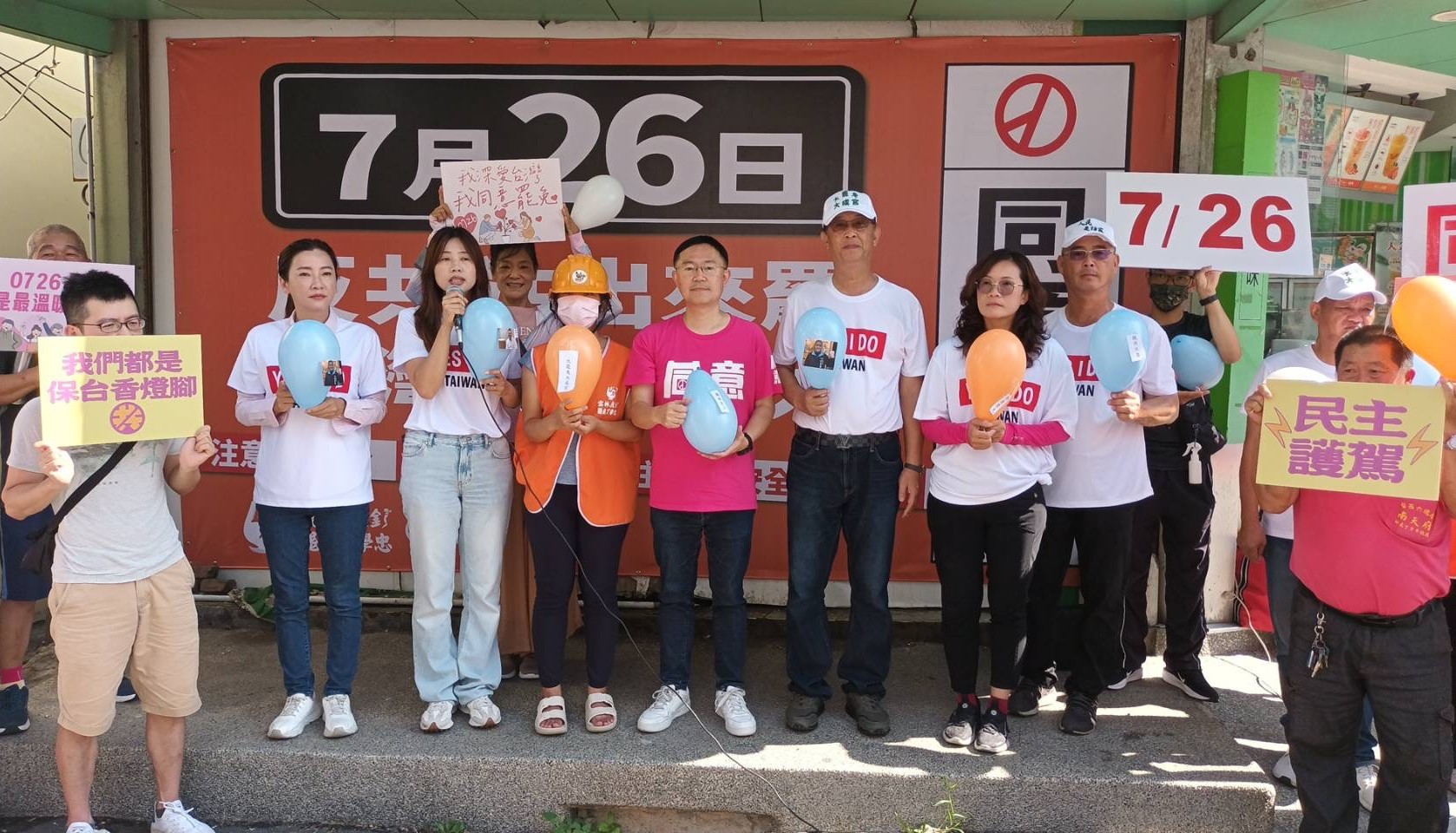 罷免團體攜手立委李坤城、縣議員蔡孟真、蔡永富、顏嘉葦等人共同號召,誓言推動民主改革,號召民眾於7月26日投下罷免同意票。(圖/記者蘇峯毅攝)