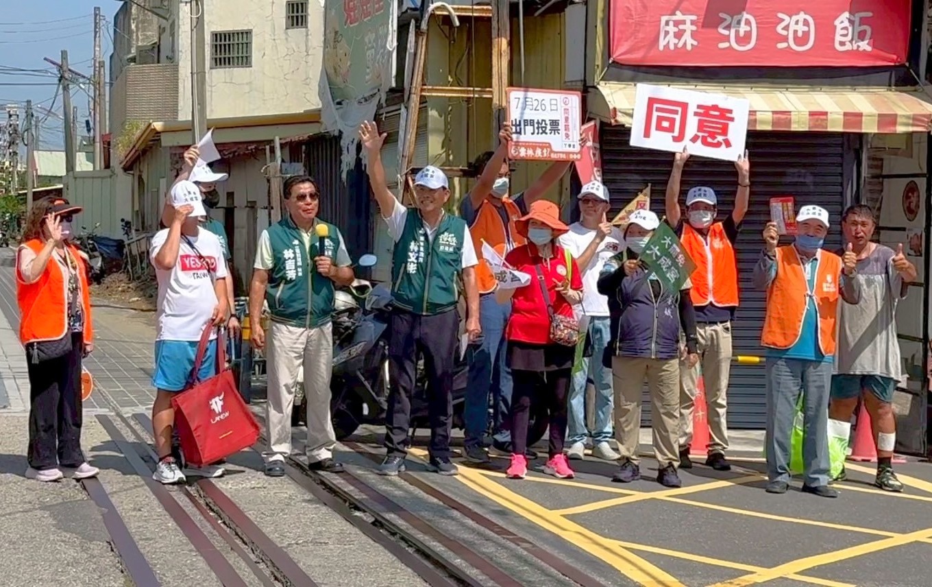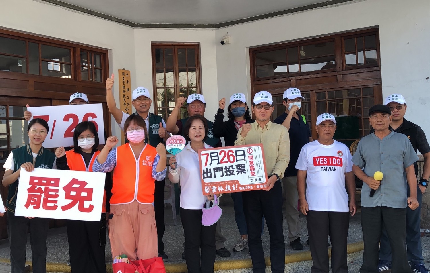 立委劉建國、議員顏嘉葦等人呼籲所有戶籍在雲林的選民7月26日返鄉投票,一人拉一票,衝破25%門檻絕非難事。(圖/記者蘇峯毅攝)