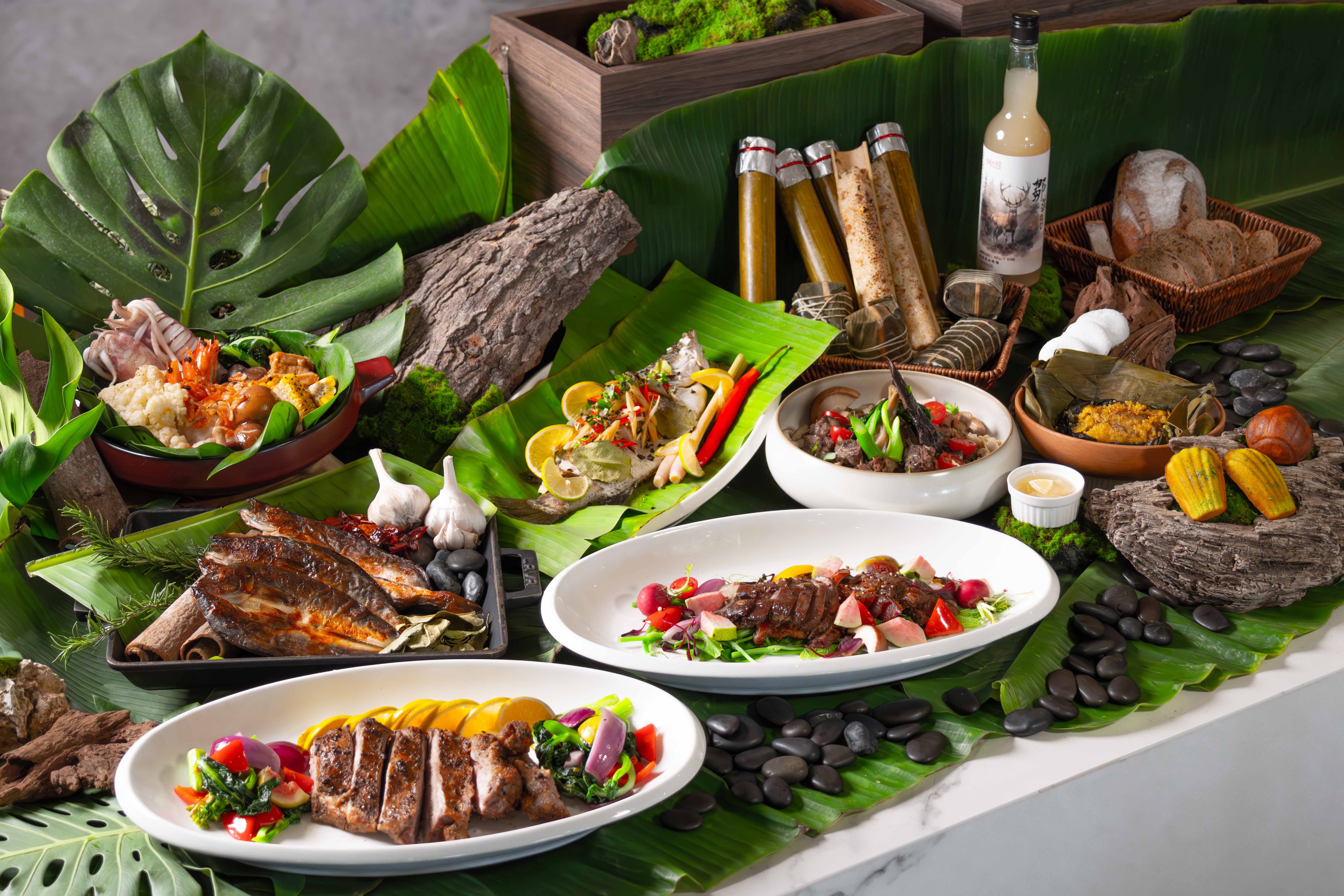 目前「原民之作」主題特色餐檯好評回歸,從嘉義在地的「鄒族野菇炒山蘇」出發,再到香氣濃郁的「美國特級馬告烤牛肩排」,以及炭香四溢的「達悟碳烤飛魚」,每道料理不僅承載阿里山的自然氣息,更蘊含整個台灣的部落豪情。