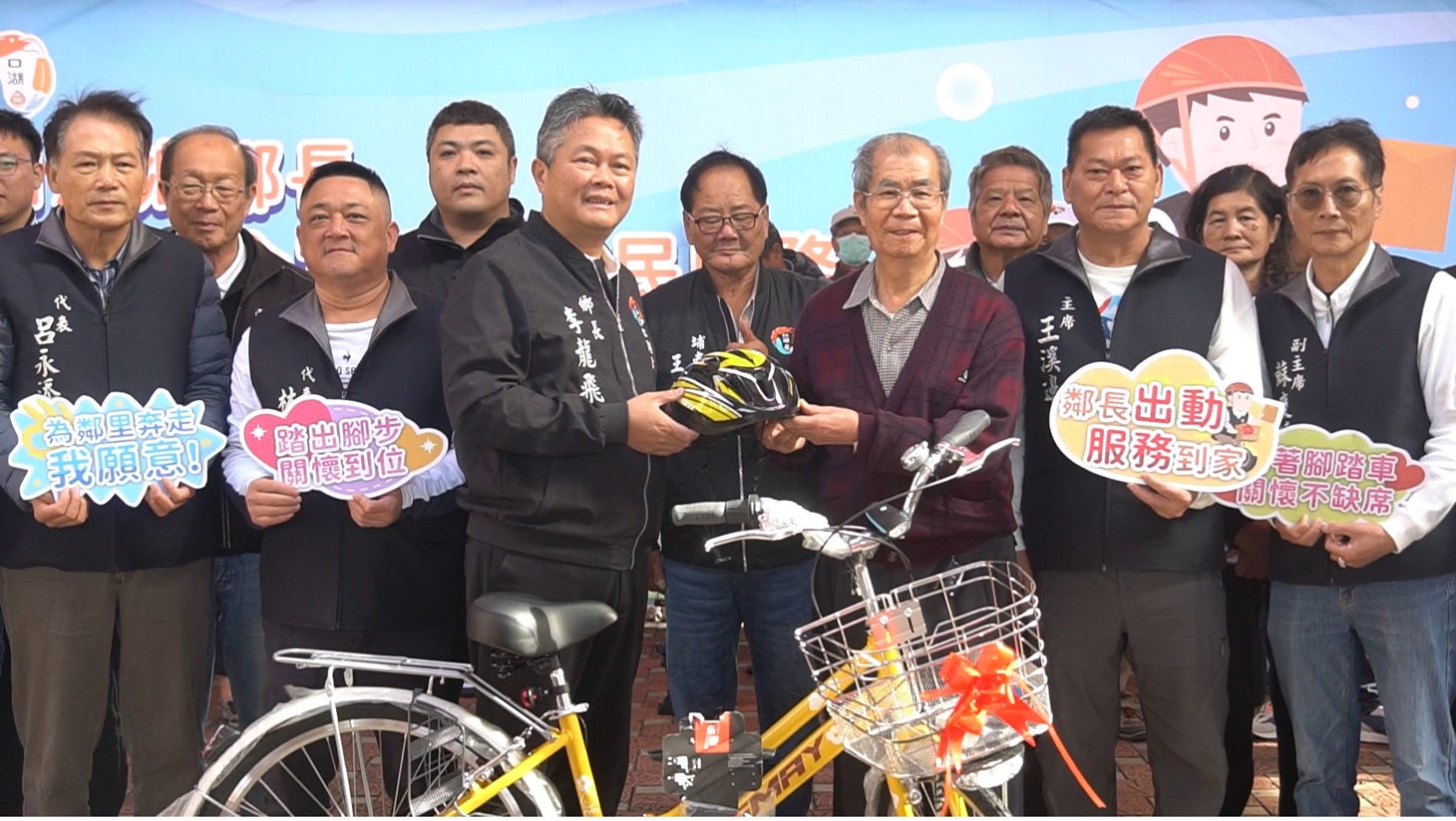 【記者蘇峯毅/雲林報導】為提升鄰長服務效能與社區服務機動性,口湖鄉公所於2月2日上午在公所前廣場舉辦「鄰長腳踏車贈送暨啟用典禮」,正式啟用新購置之服務腳踏車,鄉長李龍飛指出,鄰長長期肩負政令宣導、關懷弱勢、災情通報及協助公務推動等多項重要任務,黃色系的腳踏車類似計程車隨叫隨到,它協助鄰長深入社區,強化為民服務品質。
