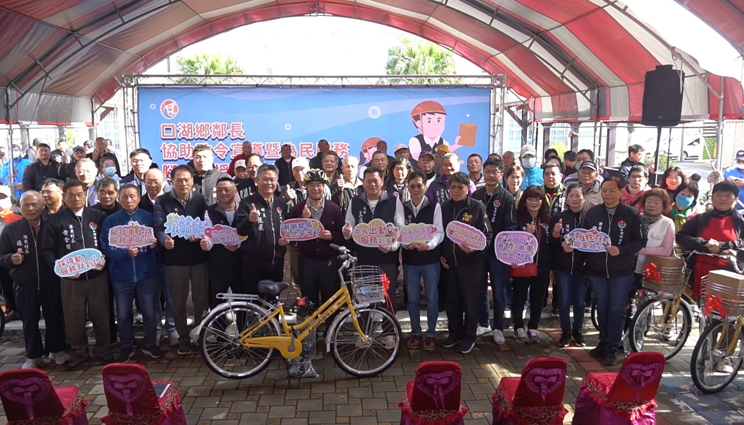 口湖鄉公所於2日在公所前廣場舉辦「鄰長腳踏車贈送暨啟用典禮」。(圖/記者蘇峯毅攝)