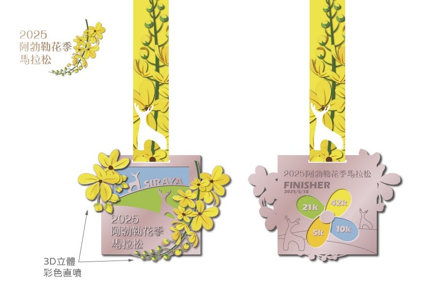 完賽獎牌以黃金雨阿勃勒為設計主軸富有紀念價值