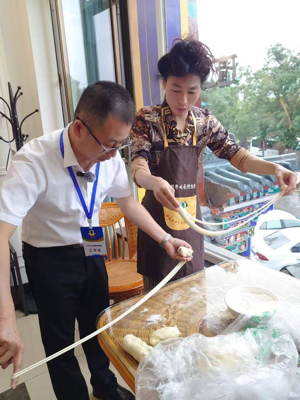 這間蘭州牛肉麵博物館既是美食享用店,也是實作體驗蘭州牛肉麵的地方,裡面還設有體驗工坊設置,和蘭州牛肉麵文化歷史展示區。在這裡,遊客可以親身揉麵、甩麵,驗蘭州牛肉麵製作工藝。
