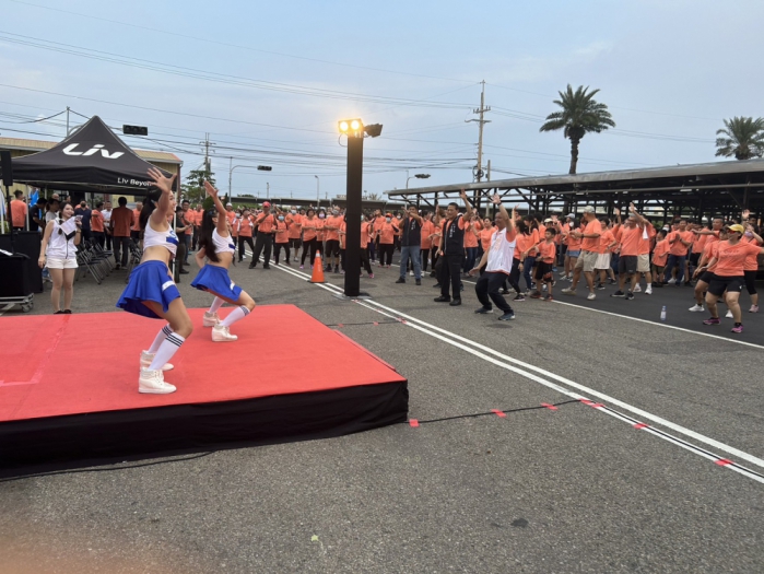 隨即整隊由來賓鳴笛,總經理王火明率領一千五百位參與員工領跑,一路沿行四好橋溝前往至松柏港。在這來回七公里的路途中,伴隨著夕陽餘暉,映照著路旁綠意盎然的自然鄉村風景,揮灑著運動汗水,而過程中巨大公司的員工們透過與身旁的夥伴互相鼓勵、互相扶持,最終一起堅持抵達終點的畫面,交織出團結的美好景象。