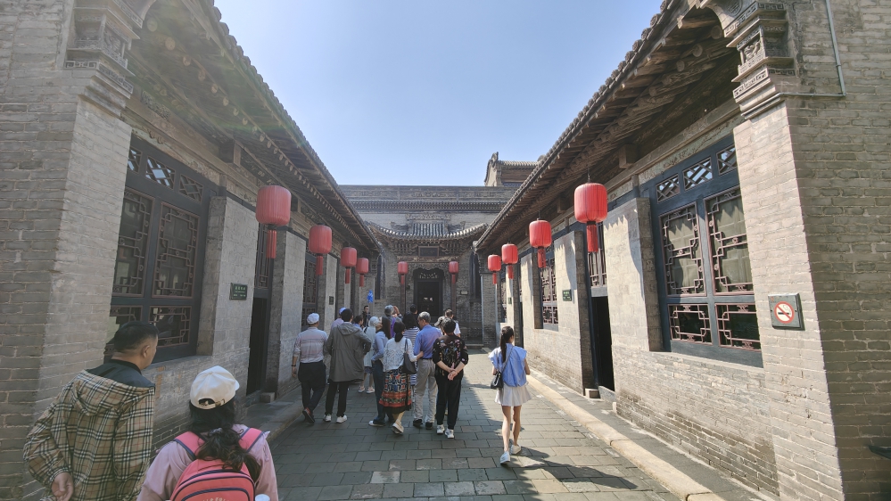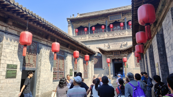 據導覽員介紹指出,喬家大院位於祁縣喬家堡村正中,又名「在中堂」,是清代著名商業金融資本家喬致庸的宅第,也是《喬家大院》、《大紅燈籠高高掛》等30多部影視作品的拍攝點。成排高掛的紅燈籠、高高的磚牆、精美的雕刻、漂亮的斗拱飛簷、深邃的巷落,這就是著名的喬家大院。