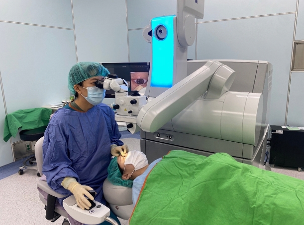 謝宜靜醫師說,施做雷射手術時,最擔心眼球定位時眼球移動產生位移,造成雷射位置偏移影響成果,中醫大附醫近視雷射中心備有最新式SMILE Pro(全新全飛秒近視雷射)及trans-PRK (全自動導引零接觸近視雷射),以SMILE Pro雷射時間快,單眼平均僅需8~10秒,代表病人需要保持眼球注視的時間變短,因此,術中發生眼球偏位的風險也會降低,對於容易敏感緊張、怕眼球亂動的人來說,是一大福音;另一特點是加入視軸與散光軸輔助導航的功能,讓整體精準度提高。