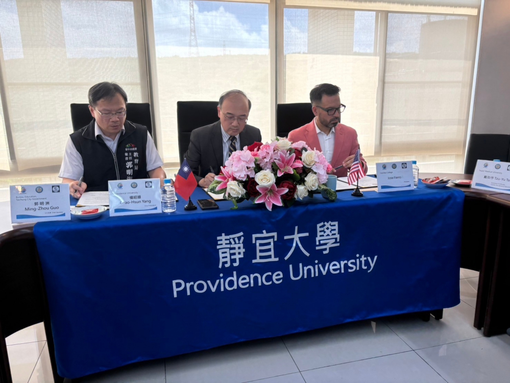 教育局長蔣偉民、靜宜大學副校長楊昭順、喜瑞都學院校長Dr. Jose Fierro,4日上午共同出席在靜宜大學舉辦的締約儀式,順利簽妥MOU,宣布長期交流關係正式開展。