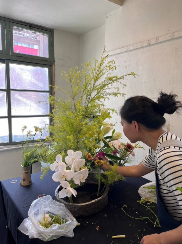 精彩創作還有吳麗雅及紀佩錡的花藝作品《柳川漫漫》,將百年來柳川經歷之光陰及波折的漫漫歲月,至近年被定位為生活休閒之河的重生歷程,以陶製花器搭配草本、木本花草植物呈現。