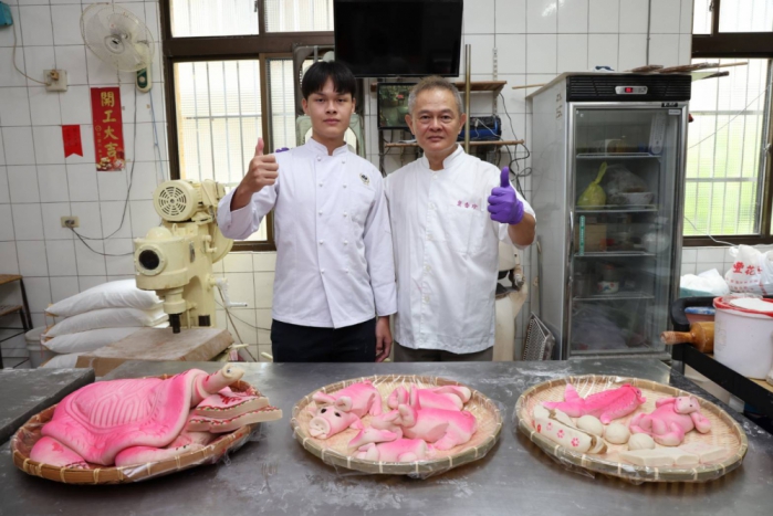 父子檔林逢盛和林易星的金工作品《台中時光寶藏》,將台中縱橫時光及甘醇回憶,包含過去、現在、未來的時空變化,以新世代之金工技法結合傳統打金技藝,展現美好時光的感動;另一對父子檔陳志昌、陳相宇的烘焙作品《鳳片龜》則將台中大肚山特產紅土花生入餡製作成鳳片牲禮,展現傳統敬天禮神、圓滿祈福的祭祀文化。