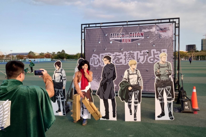 主辦單位總經理余俊芳表示,此場趣味路跑賽事路線為3.5公里,適合大家扶老攜幼參與。活動會場設有道具體驗區、打卡拍照區和互動小遊戲等,帶粉絲神遊對抗巨人的二次元世界,感受動漫主角們的冒險精神。另為響應愛心公益,特別將賽會運動用品等物資捐贈公益團體,推廣全民運動與促進社會公益。