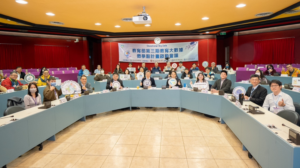 114年1月8日教育部第三期教育大數據微學程啟動會議於國立台灣師範大學舉行,教育部資科司副司長邱仁杰、台中教育大學郭伯臣校長、台中教育大學李政軒教授及教育大數據微學程分項辦公室主持人許庭嘉教授出席指導,並匯聚十四所計畫執行大學團隊成員及二十二縣市政府的數位學習辦公室代表。