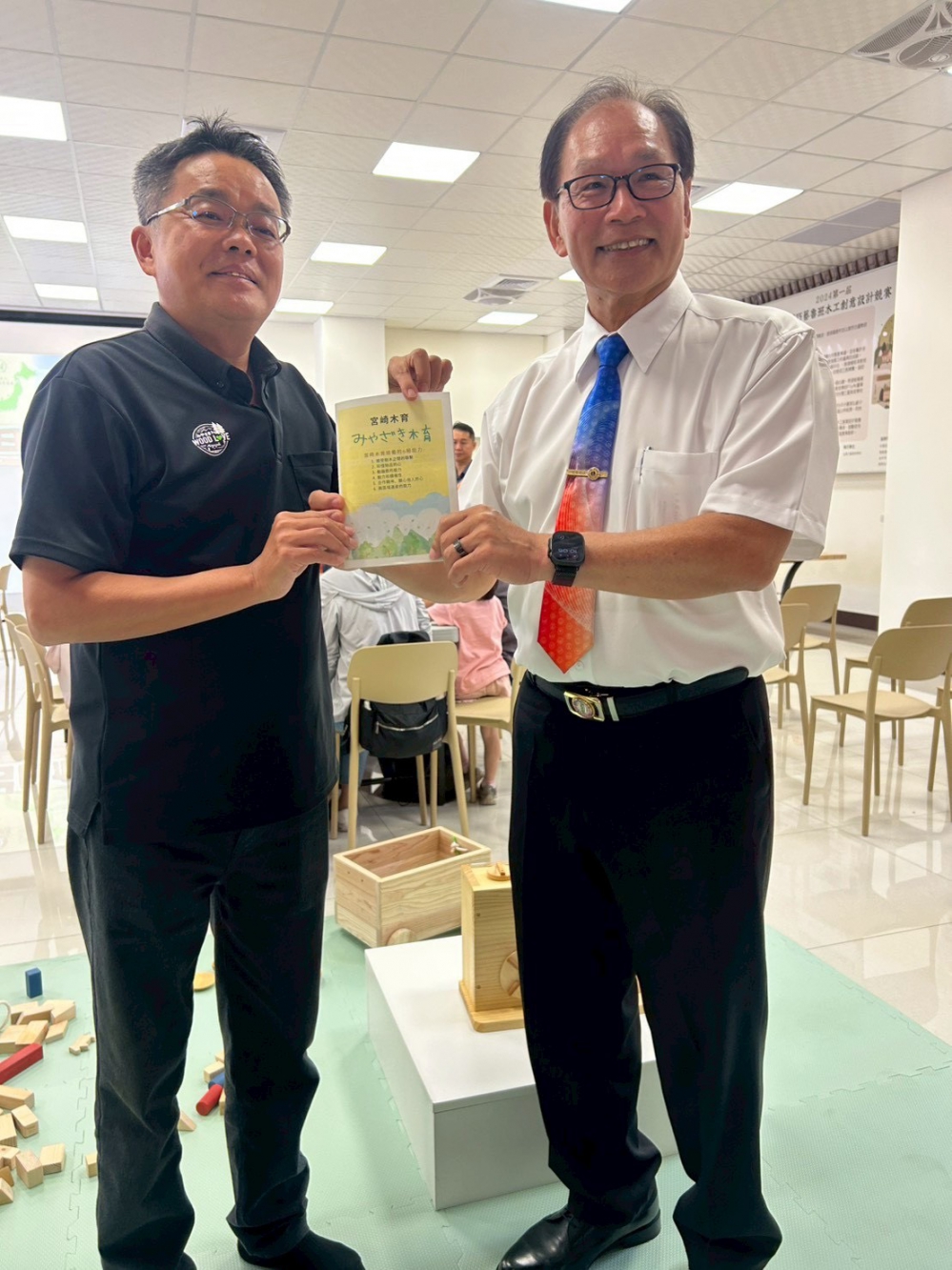 今天藉由「台日木育交流活動」,啟動與日本宮崎県正式締結姐妹會的同時,也開始展開雙方木藝與木育的交流,為再造豐原與臺中市木藝發展及教育奠定堅實的基礎。