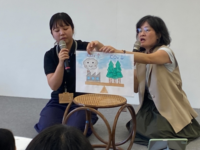 日本宮崎県環境森林部長-長倉佐知子說明,日本宮崎県是位於九州東南部的県,是日本日照最長的地方,被稱為「日本のひなた」(日本的陽光之鄉)。 這裡擁有豐富的自然景觀,「柳杉原木生產量已連續34年位居日本第一」,樹木、森林與食物密切關係、保護森林以及與森林和諧共處成為重要課題。