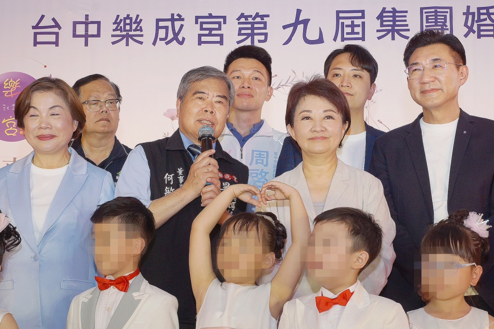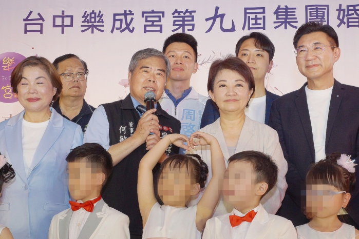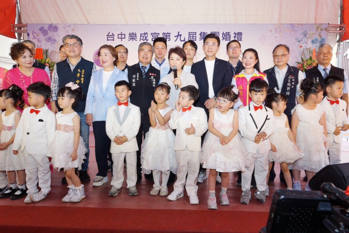 【記者林獻元台中報導】國定三級古蹟「台中樂成宮」香火鼎盛,不僅是地方重要的媽祖信仰中心,更被網友票選為全台最靈驗月老廟,成為許多年輕男女祈求良緣的聖地。樂成宮28日隆重舉行第九屆集團婚禮,市長盧秀燕親自到場為新人送上祝福、傳授婚姻保鮮秘訣,並代表市府致贈「慈光樂境」匾額,感謝樂成宮長年對地方的貢獻。