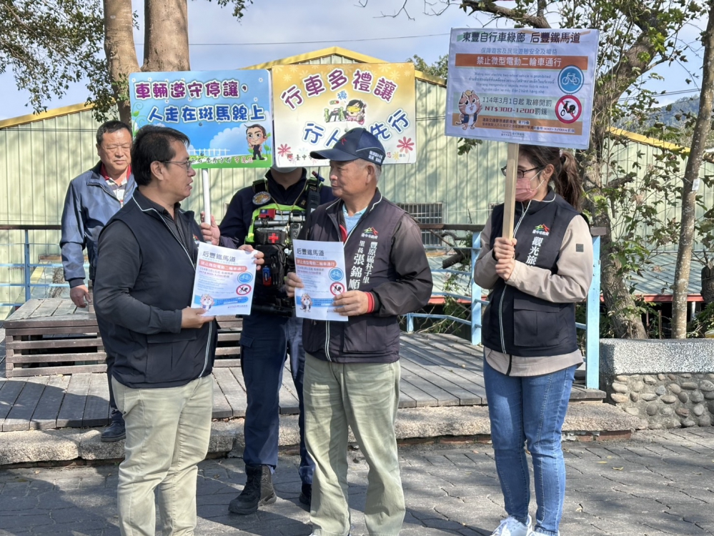 【記者張原銘、張皓傑台中報導】為維護東豐自行車綠廊以及后豐鐵馬道的行車安全與品質,台中市政府觀光旅遊局與台中市政府警察局近日辦理安全宣導及聯合稽查,自3月1日起,東豐及后豐鐵馬道禁行微型電動二輪車,違規上路者將依道路交通管理處罰條例第73條規定,處駕駛人新台幣300元以上、1200元以下罰鍰,呼籲民眾遵守相關規範,以提升自行車道的使用秩序與安全性!