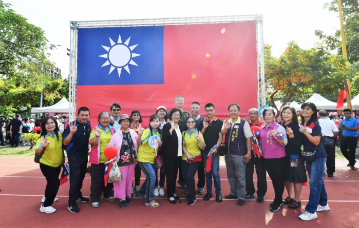 機關、店家、住宅懸掛國旗,青天白日滿地紅旗海飄揚,全民共慶國家「生日」。