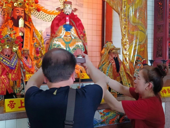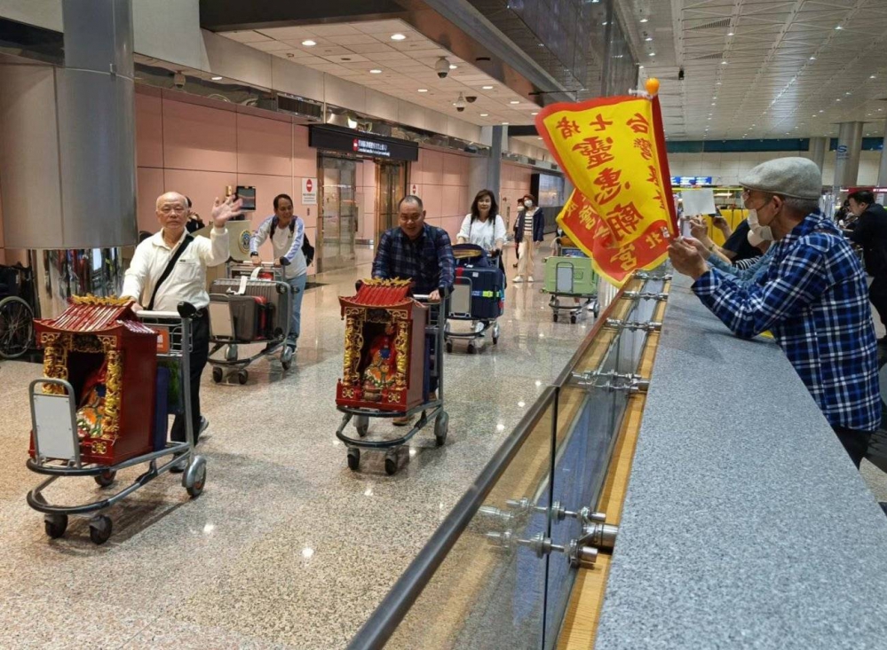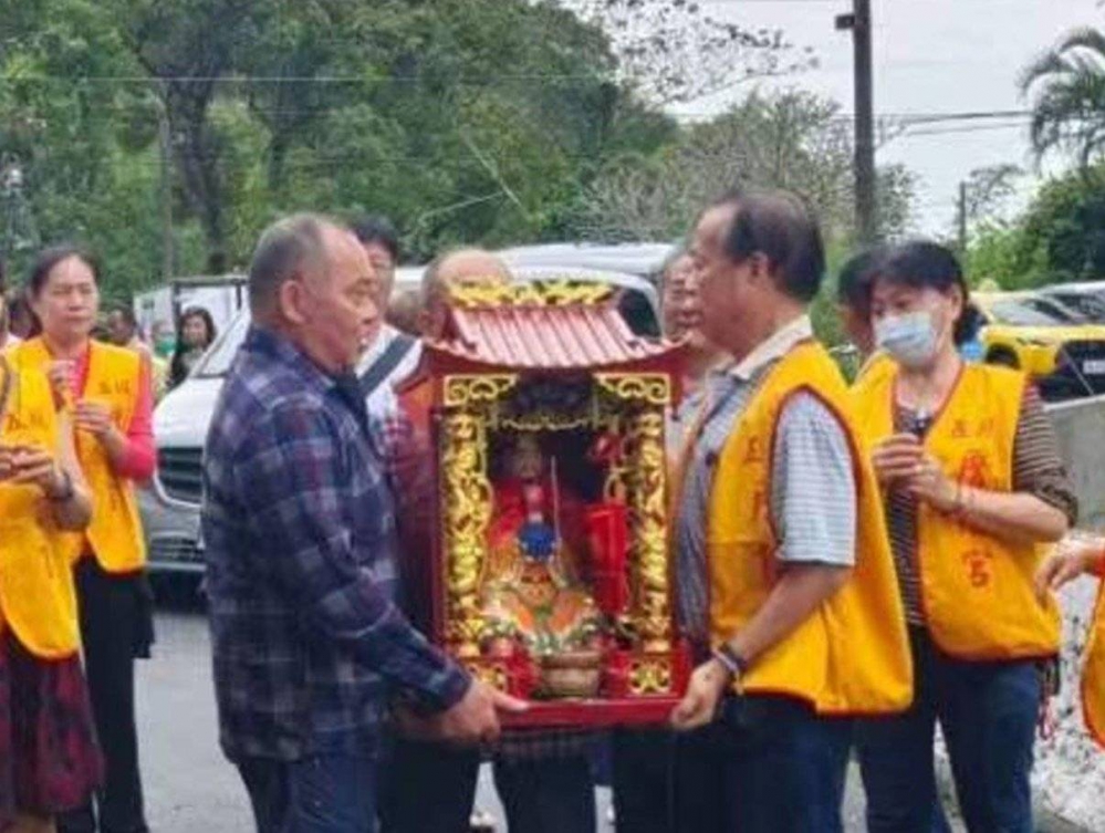 【本報綜合報導】林公忠平尊王24日抵達台灣了,在桃園機場受到許多迎接的信眾們熱烈歡迎,接著分別搭中巴到基隆市七堵靈惠廟與新北市五股詹信宮安座,請誦經師誦經祈福,祈求林公忠平尊王庇佑地方平安。