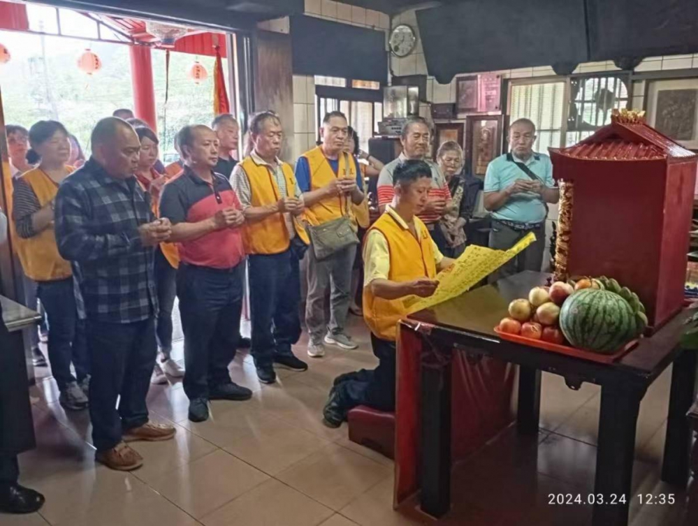 靈惠廟除了請4位隨團進香的心香禪院的師姐,負責上疏文稟告廟內諸神,要為林公忠平尊王金身安座外,還特別請5位誦經師,從下午2時開始,一直到5時,誦經祈福;詹信宮也一樣,安排大批信眾沿路迎接、上稟疏文外,還特別請舞獅團作前導,歡迎林公忠平尊王入廟安座。