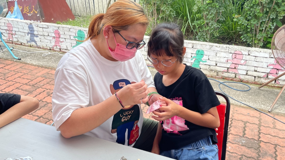 活動結束,每戶家庭帶15顆肉粽回家享用,其餘肉粽將分送給其他扶助家庭。