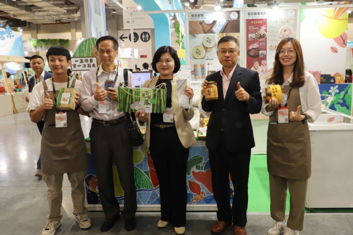 除農特產品外,縣府也響應ESG永續循環,積極輔導在地業者(磨力科技公司)與日商朋和產業株式會社合作,進行農漁業廢棄物的再利用,將稻穀、牡蠣殼等天然物質進行再加工後製成環保包材,響應縣府積極推動永續農業的政策目標。
