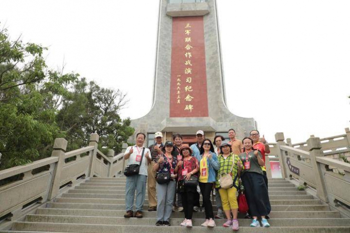 當臺胞們登上將軍山時,「祖國統一,振興中華」這幾個大字,赫然出現在紀念碑上。登高望遠、縱覽山海,臺胞們震撼于三軍演習的雄渾之氣,也將愛國之情表達。