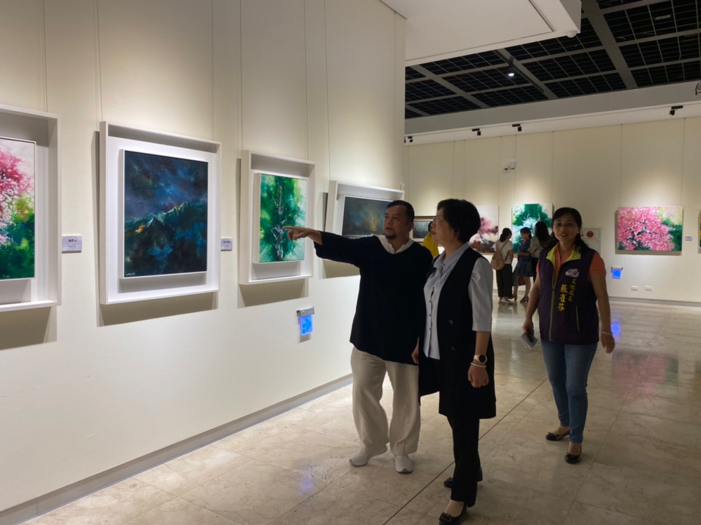 〔記者周為政彰化報導〕文化局在美術館展出﹁陳炳臣,天長地久創作個展」,王縣長歡迎藝術同好前來感受陳炳臣大師以鮮豔顏彩,層層堆疊內心嚮往大自然,以天人合一精神,傳達自然造化感動。