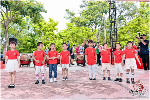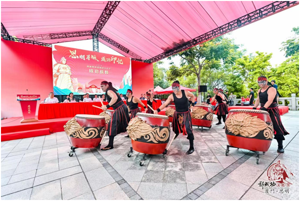 頌典儀式上還特別邀請到來自臺灣九天民俗技藝團帶來開場表演《成功戰鼓》以及與思明區文化館共同創編的鼓舞《祈願洪福》,通過活動內容與形式的創新表達,點亮中華優秀傳統文化生生不息的生命力,幫助兩岸民眾更好地感知和理解鄭成功文化精神。