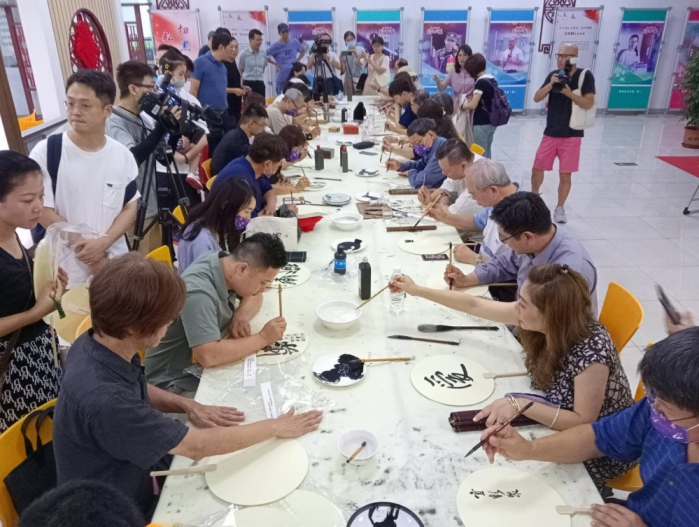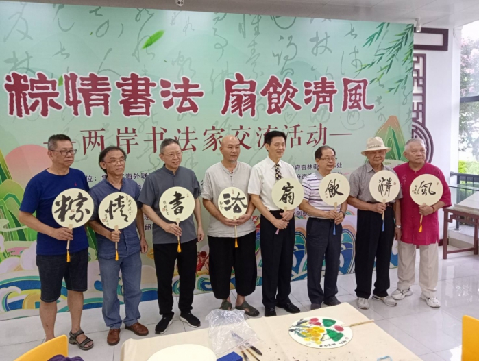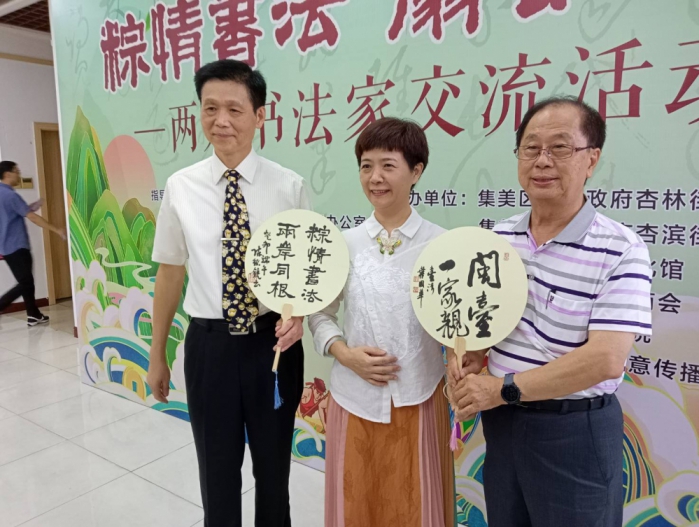 開幕結束,立刻展開兩岸書法家以筆會友,利用圓形團扇現場創作,象徵團圓、圓滿;然後將創作作品,放在展覽室,與兩岸書法家帶來的作品,一起展出一個月;臺灣中國書法會學陳銘鏡與前理事長葉國華還特別將所書寫的「粽情書法、兩岸同根」、閩臺一家親」圓形團扇,贈送給集美區台港澳辦主任陳賢玲。