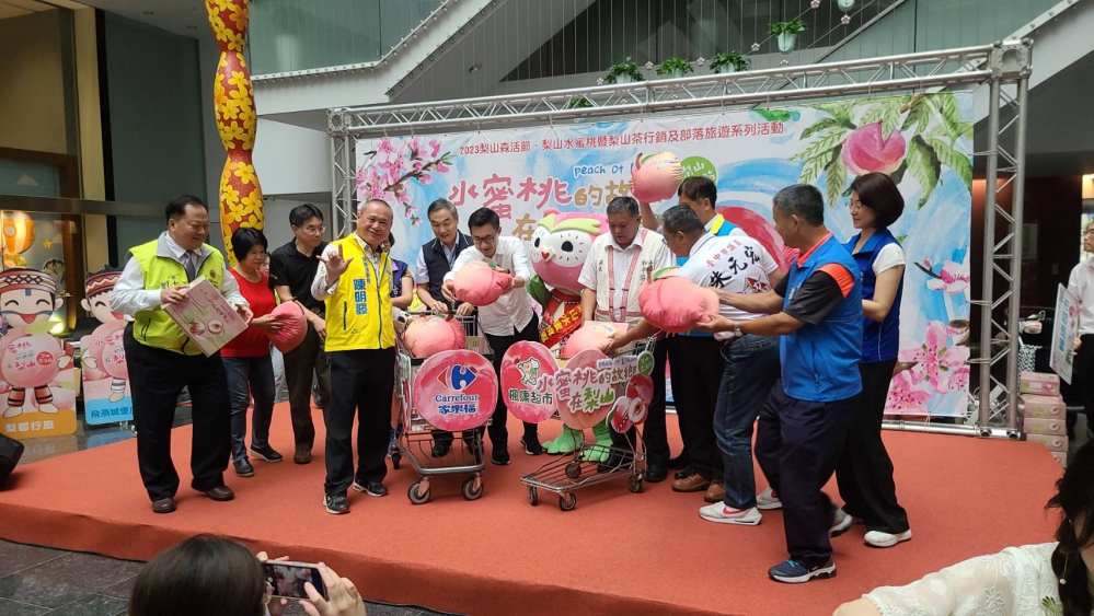 記者會,除有多家梨山茶商在現場邀民品茗,吉祥物桃桃也特別到場同歡,副市長黃國榮也與和平區長吳萬福推著裝著滿滿水蜜桃抱枕的購物車進行啟動儀式,場面十分熱鬧。