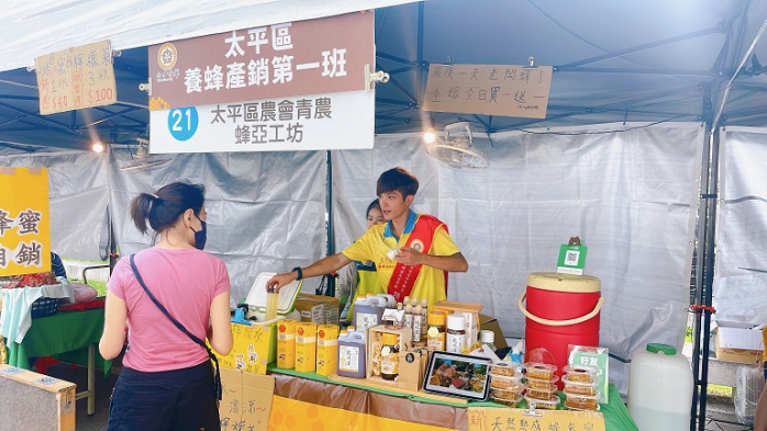 「台中蜂華‧閃耀蜂芒」國產龍眼蜂蜜暨農特產品行銷活動,農業局副局長蔡勇勝、農糧署科長李協昌、農糧署中區分署主任江永煜、台中市農會總幹事林育葦、大里區農會總幹事賴東陽、大甲區農會總幹事黃瑞祥、霧峰區農會常務監事黃清標、台中地區農會秘書林文圳、議員黃馨慧秘書林廷隆、議員黃守達助理陳彥宇皆到場蒞臨指導。