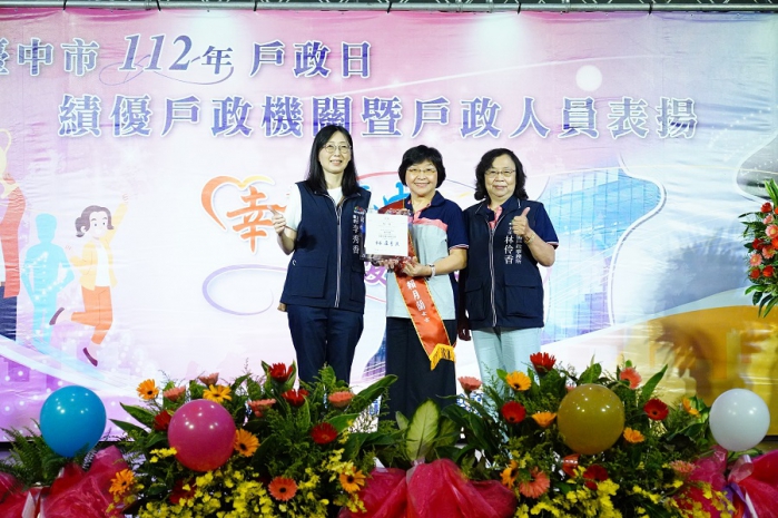 【記者林獻元台中報導】台中市政府推動創新戶政服務,榮獲內政部戶政業務評鑑直轄市組第2名殊榮,為肯定戶政人員優異表現及慰勉同仁辛勞,中市府特別選在1日「全國戶政日」舉行慶祝活動,表揚10區績優戶政機關及35位績優戶政人員。民政局副局長周瑺玫代表市長盧秀燕出席表示,感謝全體戶政人員的辛勞奉獻,並期勉持續秉持「以民為本」、「溫暖民心」的服務理念,打造戶政多元便民服務,為市民帶來更美好的台中。