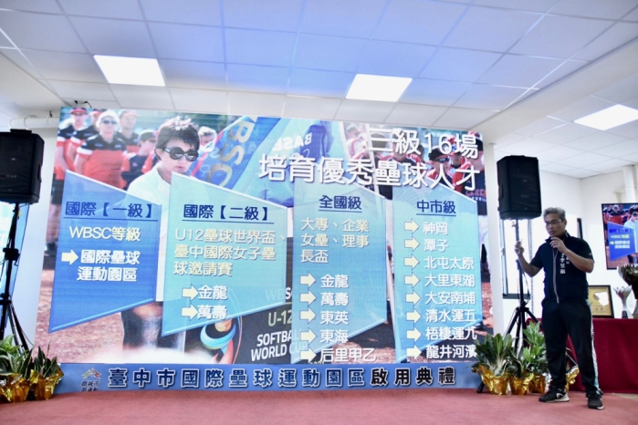 此外,近年台中也陸續投入資源,完善台中壘球運動網絡,包括萬壽、金龍、太原、東英、東海、潭子、梧棲運九、神岡、清水運五、大安南埔、后里甲乙、大里東湖、龍井河濱等,以及今日啟用的壘球園區共16座場地,持續活絡台中壘球運動風氣。近年台中壘球成績相當優秀,包含企業女壘、學生聯賽以及慢速壘球等賽事表現亮眼、囊括多座全國冠軍;2022 U12壘球世界盃也由台中市榮獲國家代表權,並成功拿下冠軍寶座,顯見台中壘球持續蓬勃發展。