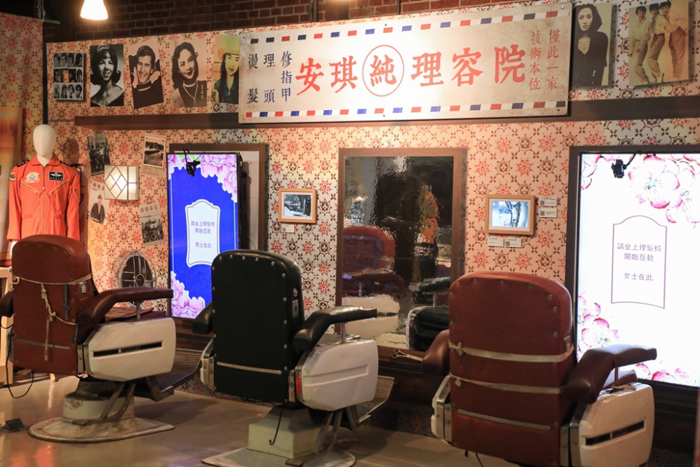 展區「一卡皮箱到臺灣」以復古風情打造出眷村客廳與懷舊理髮廳,另有VR的互動科技可以感受眷村風情與有趣的換裝遊戲;記憶中的懷舊錄影帶店,也在展區「八千里路」、「小沈出租店」的VHS出租店,復刻出昔日情懷。