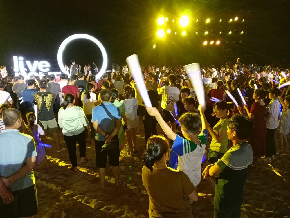 兩岸音樂美食周活動,則邀請兩岸的青年樂團,在沙灘上舉辦音樂晚會,每天從下午6時30分開始,到8時30分,不間斷由兩岸的歌手、樂團,表演一連串樂門歌曲,台上台下打成一片,現場從頭至晚都嗨翻天,5日首晚就吸引上千遊客前往捧場,到了晚上8時30分,音樂會結束時間,聽眾還意猶未盡,「安可」聲不斷,活動一直進行到過了9時才結束。