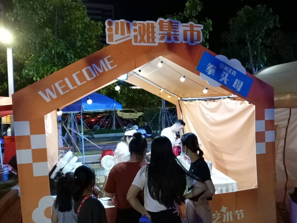 來到玉沙灣公園,除了可以有音樂可以欣賞外,還有美食可以品嚐,將臺灣的12到知名美食蚵阿煎、擔仔麵、大腸包小腸、章魚小丸子、檸檬愛玉、花生捲冰淇淋、香腸壽司、檸檬蘭香子等,以及泉州的12道地方特色美食沙茶麵、沙茶魷魚、麵線糊、牛肉羹、拳頭母、泉州滷料等,共計有24個攤位,讓遊客們吃個夠。