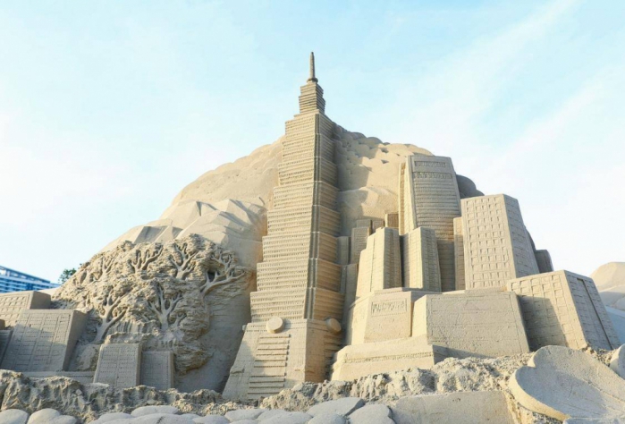 兩岸沙雕藝術節是以「青連兩岸」、「繽紛海洋」為主題,要請兩岸的沙雕專家與青年,在美麗的沙灘上,分別創作了包括臺北101大樓、臺灣阿里山、泉州東西塔老君岩雕像等11座創意沙雕,成了遊客們打卡的好地方。