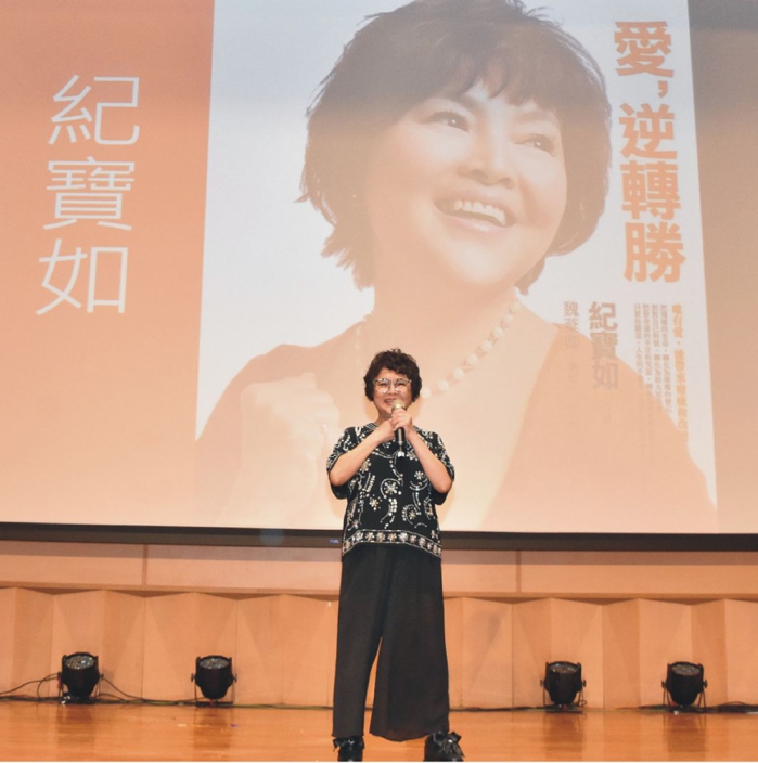 紀寶如說,很開心在彰基跟大家分享自己的生命故事,其實她與彰基很有淵源,很多年前就共同合作,因台灣優質生命協會分享與長輩相處,擔任彰基志工,人的生命際遇本來就是有高山、有低谷,經常覺得難關跨不過去,但有神在保護你,當你在低谷時,祂安慰你,當你在高山時,祂一樣陪伴你,如能認識祂,就是一生最美的祝福。