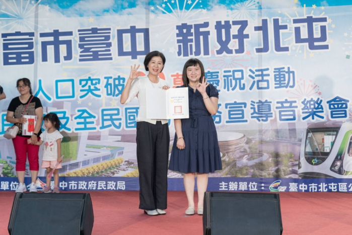 【記者林獻元台中報導】台中市第一大行政區「北屯區」人口上月突破30萬人,歡慶北屯蓬勃發展,台中市北屯區公所8日在新都生態公園舉辦草地音樂會,邀請知名歌手及樂團帶來精彩表演,還有親子彩繪風箏體驗,五顏六色的創意風箏隨風飄揚,象徵北屯百業齊鳴,邁向永續繁榮的共好新生活。副市長王育敏出席與市民同樂,並代表市長盧秀燕頒贈第29萬9996至第30萬名設籍民眾幸運好禮,感謝市民支持移居北屯,市府將持完善各項公共建設,讓城市更好更宜居。