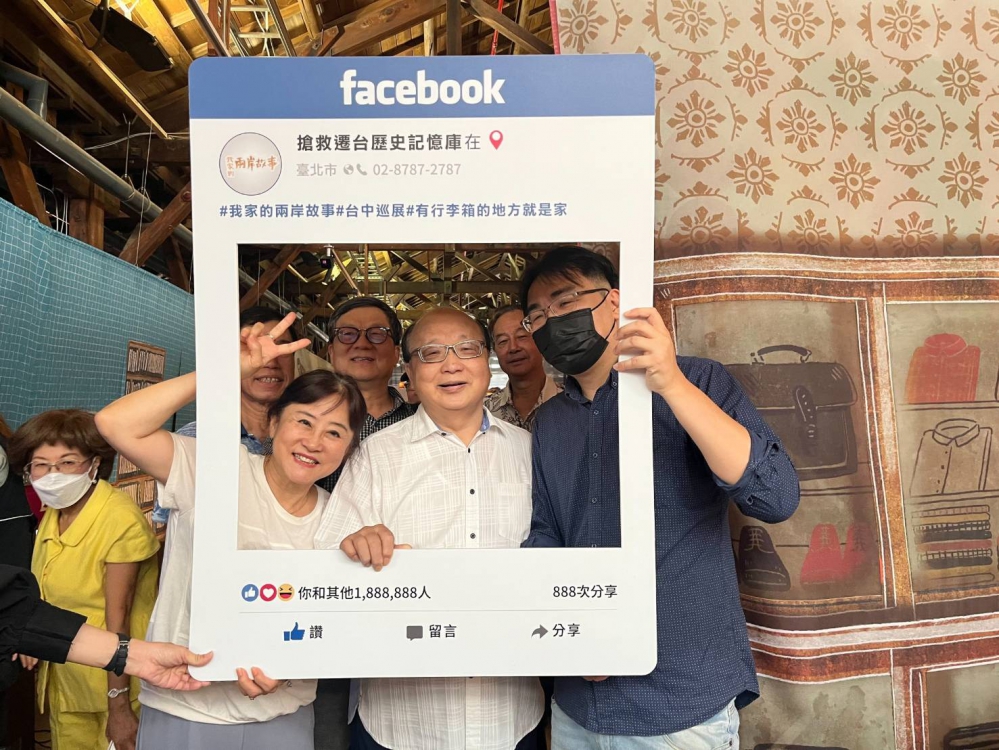 【記者林獻元台中報導】由沈春池文教基金會主辦的「我家的兩岸故事」在台中巡展,前台中市長胡志強9日親自到展場參觀,部分前市府團隊同仁一起陪同看展;胡志強邊看展邊聊起自己過去成長的歲月,還與朋友一起體驗科技變裝的趣味裝置,他說基金會搶救遷台歷史記錄是人文公益的善舉,值得記錄也值得大家一起來體驗。