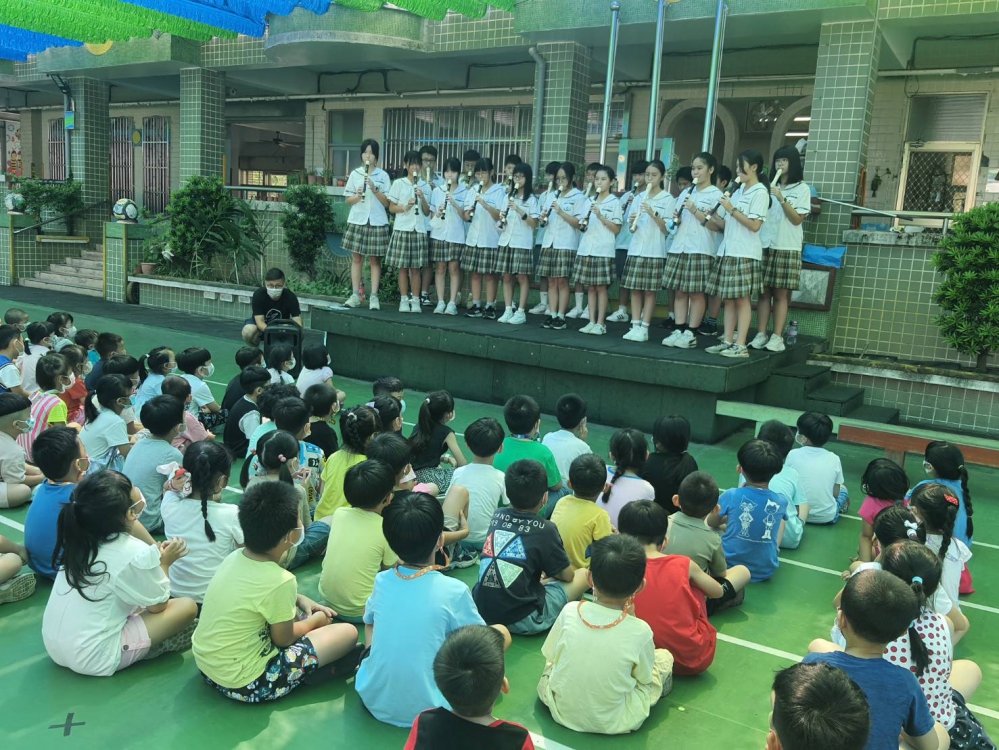 劉校長指出,疫情解封,師生決定走入社區,以音樂表演與大家互動,學校招募有興趣快閃表演的直笛隊員,利用平常課程午休、課後集訓練習。
